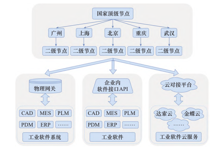 對(duì)于工業(yè)企業(yè),依靠工業(yè)軟件提升工業(yè)產(chǎn)品價(jià)值、降低企業(yè)成本、提高核心競(jìng)爭(zhēng)力,是“兩化融合”重要的切入點(diǎn)和突破口,因而推動(dòng)工業(yè)軟件一體化是領(lǐng)域亟需。作為數(shù)字世界的身份證,標(biāo)識(shí)解析系統(tǒng)是驅(qū)動(dòng)工業(yè)互聯(lián)網(wǎng)創(chuàng)新發(fā)展的關(guān)鍵核心設(shè)施;與物理網(wǎng)關(guān)、接口平臺(tái)、云一體化技術(shù)結(jié)合,可降低工業(yè)軟件一體化成本,提升工業(yè)軟件服務(wù)能力,賦能全產(chǎn)業(yè)鏈互聯(lián)互通(見(jiàn)圖 2)。