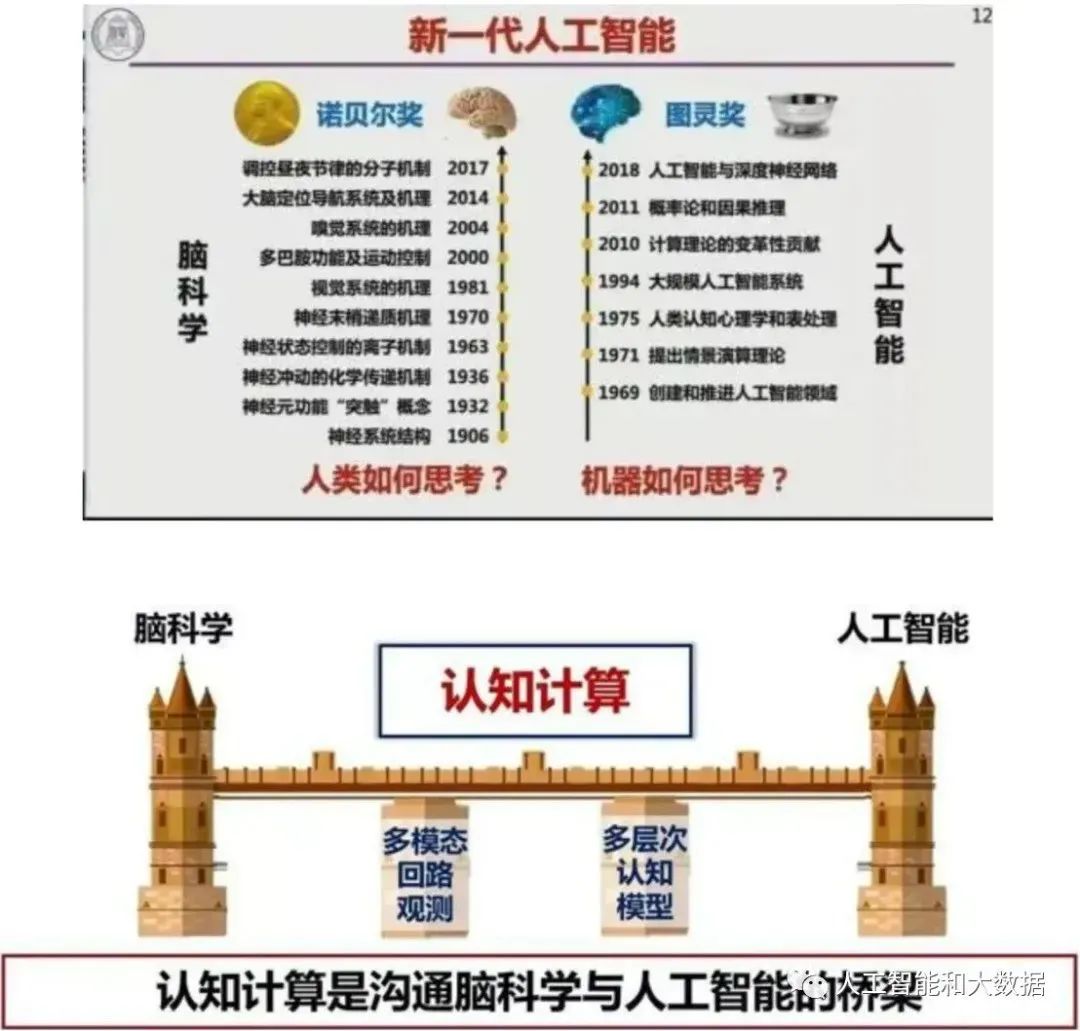 腦科學研究人類如何思考,圖靈獎關(guān)注的是機器如何思考,這是兩條平行線。人工智能專家往往將腦科學的部分現(xiàn)象和模型應用到人工智能里面去。這就給了我們一個啟發(fā):能不能在腦科學和人工智能之間架起一個橋梁,這個橋梁就是認知計算。支撐這個橋梁的兩個橋墩,是多模態(tài)回路觀測以及多層次認知模型。通過解決微觀、宏觀的回環(huán)交互問題,來創(chuàng)造新一代人工智能。