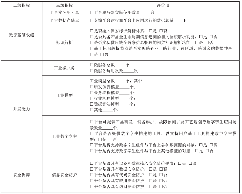 基礎支撐能力主要包括數(shù)字基礎設施、開發(fā)能力、安全保障等三個方面,主要用于評價平臺在賦能制造企業(yè)數(shù)字化轉(zhuǎn)型過程中,所提供的存儲、算力、開發(fā)工具、開發(fā)環(huán)境以及安全保障等基礎支撐能力的基礎支撐能力,具體評價指標和評價項表1。