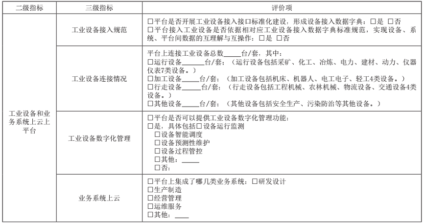 數(shù)據(jù)匯聚能力主要包括工業(yè)設備上云、工業(yè)大數(shù)據(jù)、工業(yè)APP等三個方面,從數(shù)據(jù)采集、交換、分析、管理以及面向特定場景的具體應用情況來評價工業(yè)互聯(lián)網(wǎng)平臺數(shù)據(jù)要素匯聚的能力,具體評價指標和評價項表2。