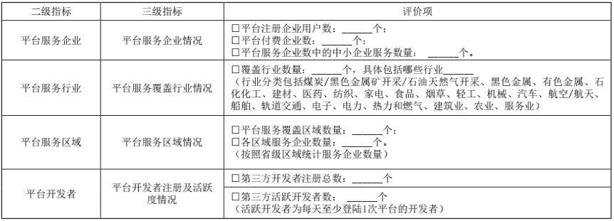 服務創(chuàng)新能力主要包括平臺服務企業(yè)情況、服務行業(yè)情況、服務區(qū)域情況、平臺開發(fā)者社區(qū)、平臺注冊用戶五個方面的內(nèi)容,用于評價工業(yè)互聯(lián)網(wǎng)平臺賦能制造業(yè)數(shù)字化轉(zhuǎn)型的服務創(chuàng)新能力。