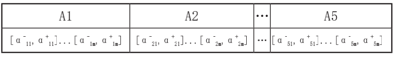 其中專家人數(shù)為m、α-ij、α+ij、分別代表第j位專家對第α+iji項指標評分的下限和上限,A1-A5、B1-B19、C1-C41分別代表各一級指標、二級指標和三級指標。