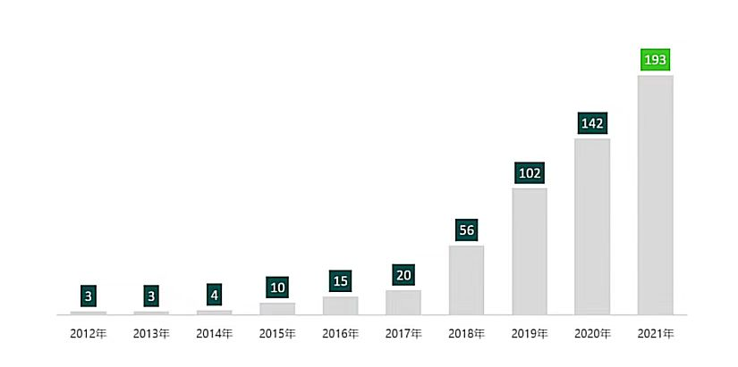 中國歷年地級及以上政府?dāng)?shù)據(jù)開放平臺數(shù)量增長情況