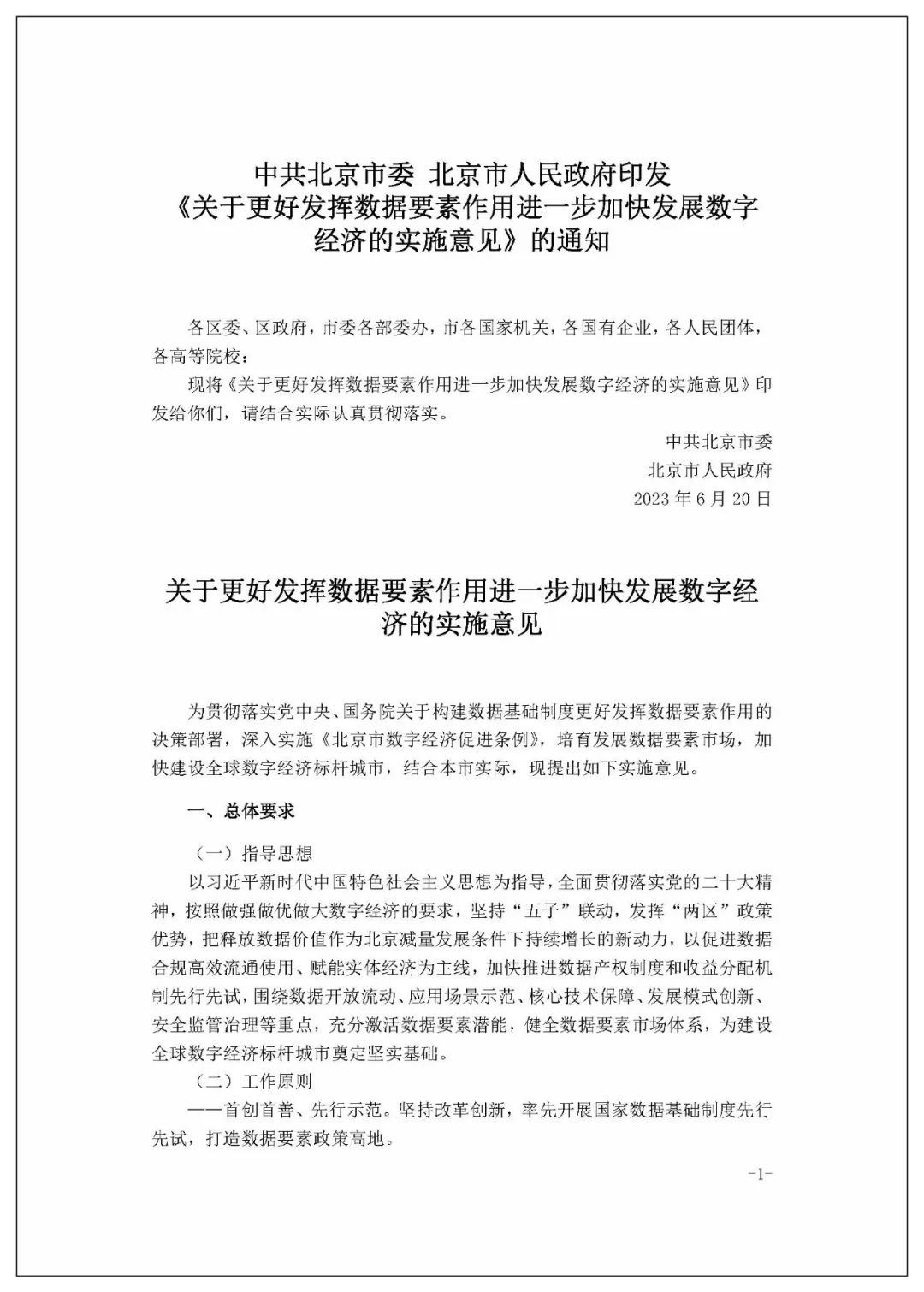 近日,北京發(fā)布《關(guān)于更好發(fā)揮數(shù)據(jù)要素作用進(jìn)一步加快發(fā)展數(shù)字經(jīng)濟(jì)的實(shí)施意見》通知,業(yè)界稱“北京數(shù)據(jù)二十條”。