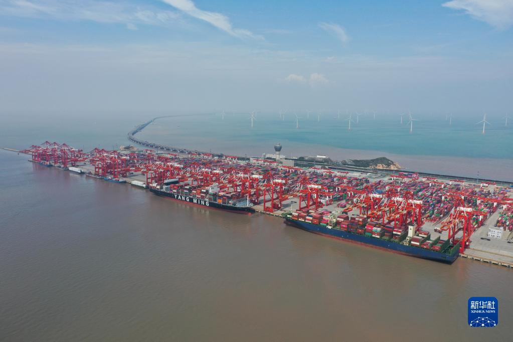 這是2022年9月23日拍攝的上海洋山港集裝箱碼頭(無人機照片)。