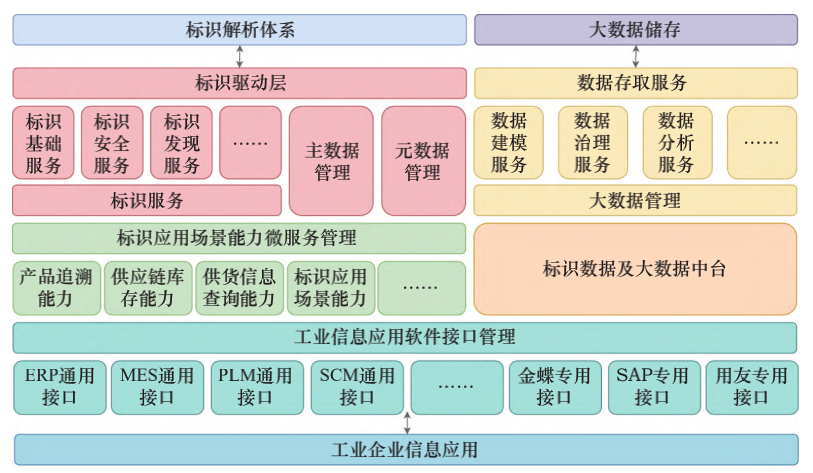 標(biāo)識(shí)服務(wù)模塊提供與標(biāo)識(shí)相關(guān)的能力服務(wù),如解析、注冊(cè)、管理、安全、發(fā)現(xiàn)等標(biāo)識(shí)功能以及標(biāo)識(shí)涉及的主數(shù)據(jù)、元數(shù)據(jù)管理能力。大數(shù)據(jù)服務(wù)主要提供非標(biāo)識(shí)數(shù)據(jù)的存儲(chǔ)、治理、分析、建模等能力。標(biāo)識(shí)應(yīng)用場(chǎng)景將標(biāo)識(shí)與業(yè)務(wù)結(jié)合起來(lái),服務(wù)產(chǎn)業(yè)鏈、供應(yīng)鏈等應(yīng)用軟件之間,企業(yè)間,行業(yè)間的數(shù)據(jù)關(guān)系應(yīng)用,豐富平臺(tái)能力。標(biāo)識(shí)與大數(shù)據(jù)中臺(tái)結(jié)合為應(yīng)用軟件提供數(shù)據(jù)中臺(tái)能力。工業(yè)信息應(yīng)用軟件接口分為從業(yè)務(wù)層面拆分的通用類(lèi)、從廠家層面拆分的專(zhuān)用類(lèi),為工業(yè)企業(yè)提供原有應(yīng)用的接入標(biāo)識(shí)體系。例如,K/3Cloud 用于標(biāo)識(shí)解析系統(tǒng)與工業(yè)企業(yè)內(nèi)部 ERP 系統(tǒng)對(duì)接,以接口來(lái)實(shí)現(xiàn)標(biāo)識(shí)系統(tǒng)與工業(yè)軟件的信息及服務(wù)同步;通過(guò)標(biāo)識(shí)解析系統(tǒng)與 K/3Cloud 系統(tǒng)之間的信息互通,實(shí)現(xiàn)物流訂單信息的查看、保存、提交、審核、反審核、刪除等功能。接口平臺(tái)是一種輕量級(jí)、可維護(hù)、可伸縮的 Web 服務(wù),以 RESTful 架構(gòu)方式實(shí)施開(kāi)發(fā);將物流訂單中的發(fā)貨物料信息、發(fā)貨時(shí)間、發(fā)貨計(jì)劃人、收貨信息等接入標(biāo)識(shí)服務(wù),貫通了工業(yè)企業(yè)的內(nèi)部碼與物流碼,加速物流信息的流通速度,提升物流服務(wù)的準(zhǔn)確度。