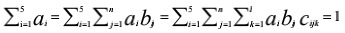 其中ai、bij、 cijk分別為一級、二級、三級指標對應的權重,j為一級指標AΣ5i=1ai=i對應的二級指標個數(shù),k為二級指標Bj對應的三級指標個數(shù)。