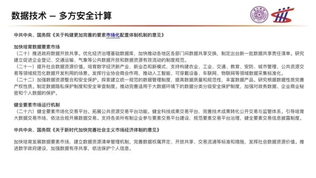 由中共中央、國(guó)務(wù)院發(fā)布的《關(guān)于構(gòu)建更加完善的要素市場(chǎng)化配置體制機(jī)制的意見》 與《關(guān)于新時(shí)代加快完善社會(huì)主義市場(chǎng)經(jīng)濟(jì)體制的意見》都強(qiáng)調(diào)要加快培育數(shù)據(jù)要素市場(chǎng),健全要素市場(chǎng)運(yùn)行機(jī)制。那么,在個(gè)人數(shù)據(jù)隱私法與數(shù)據(jù)安全法的要求前提下,要使數(shù)據(jù)在隱私保護(hù)的環(huán)境下進(jìn)行流通,就變成了必要的基礎(chǔ)。