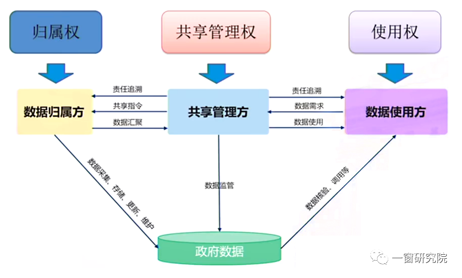 以上,基于這三方權(quán)力的確認(rèn),就比較容易建立起一種數(shù)據(jù)共享使用中的可信機(jī)制,我們把這套機(jī)制稱為叫基于“三權(quán)分置”的跨部門數(shù)據(jù)共享模式。