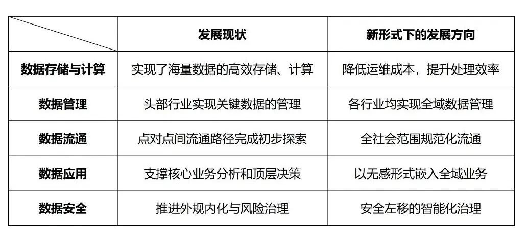 這五大核心領(lǐng)域由于發(fā)展起步時間不同、應用需求緊迫程度不同等原因,發(fā)展模式存在差異。在當前數(shù)據(jù)成為生產(chǎn)要素并快速融入生產(chǎn)、分配、流通、消費等各環(huán)節(jié)的新形勢下,大數(shù)據(jù)五大核心領(lǐng)域的發(fā)展方向均進一步明確。