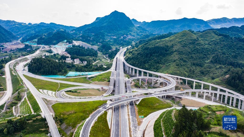 這是貴州石阡至玉屏高速公路花橋互通(2021年6月17日攝,無人機照片)。
